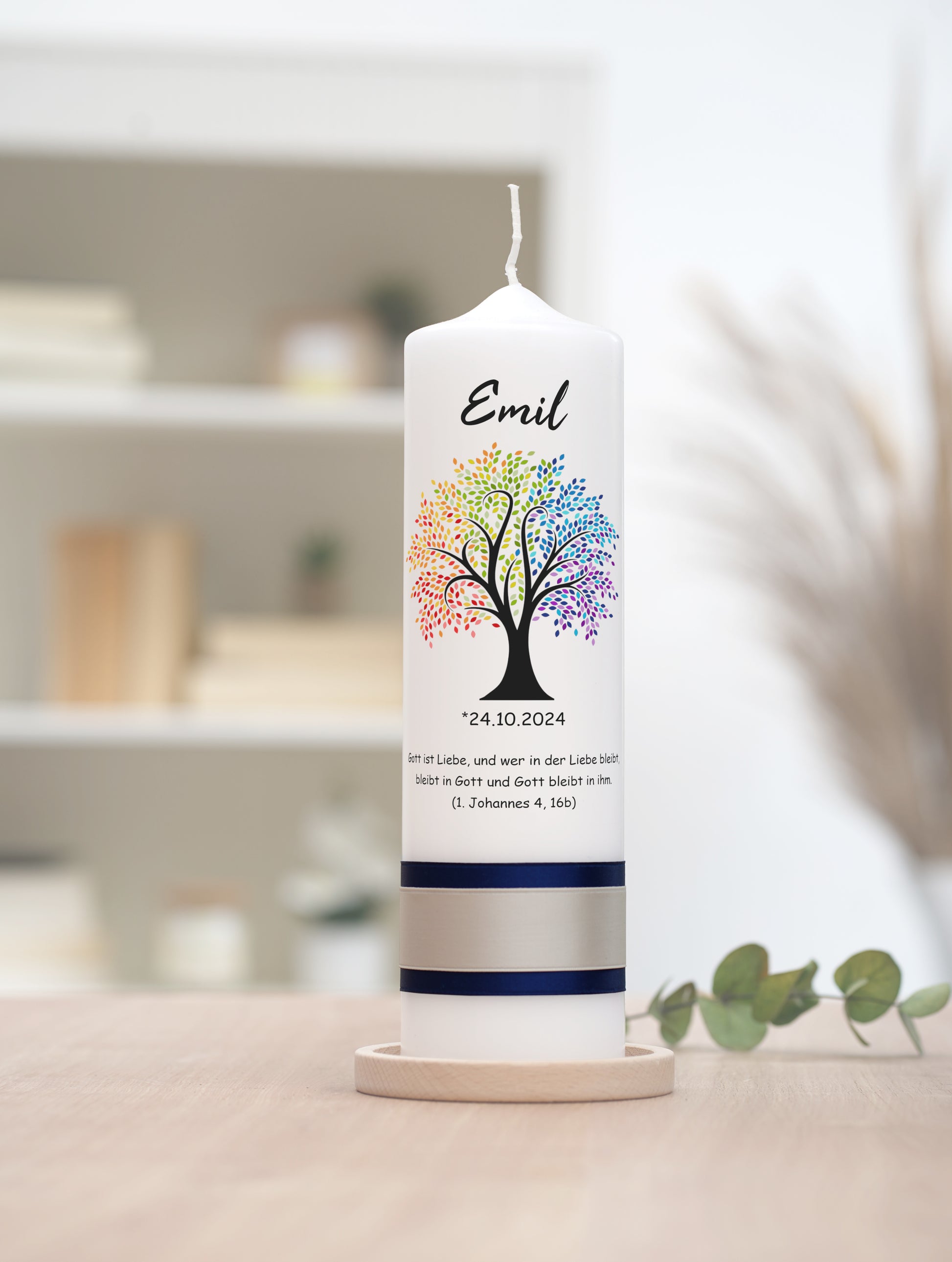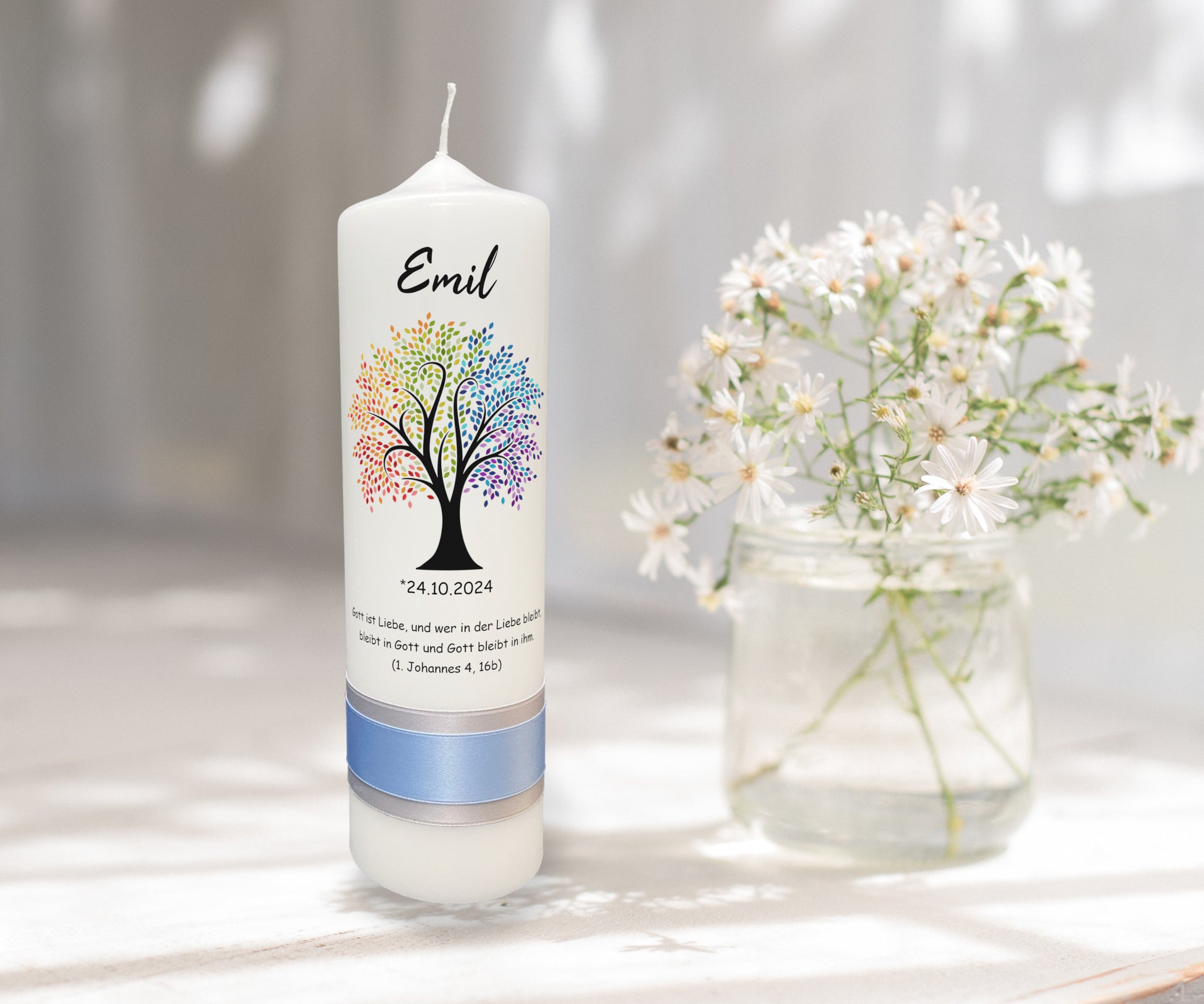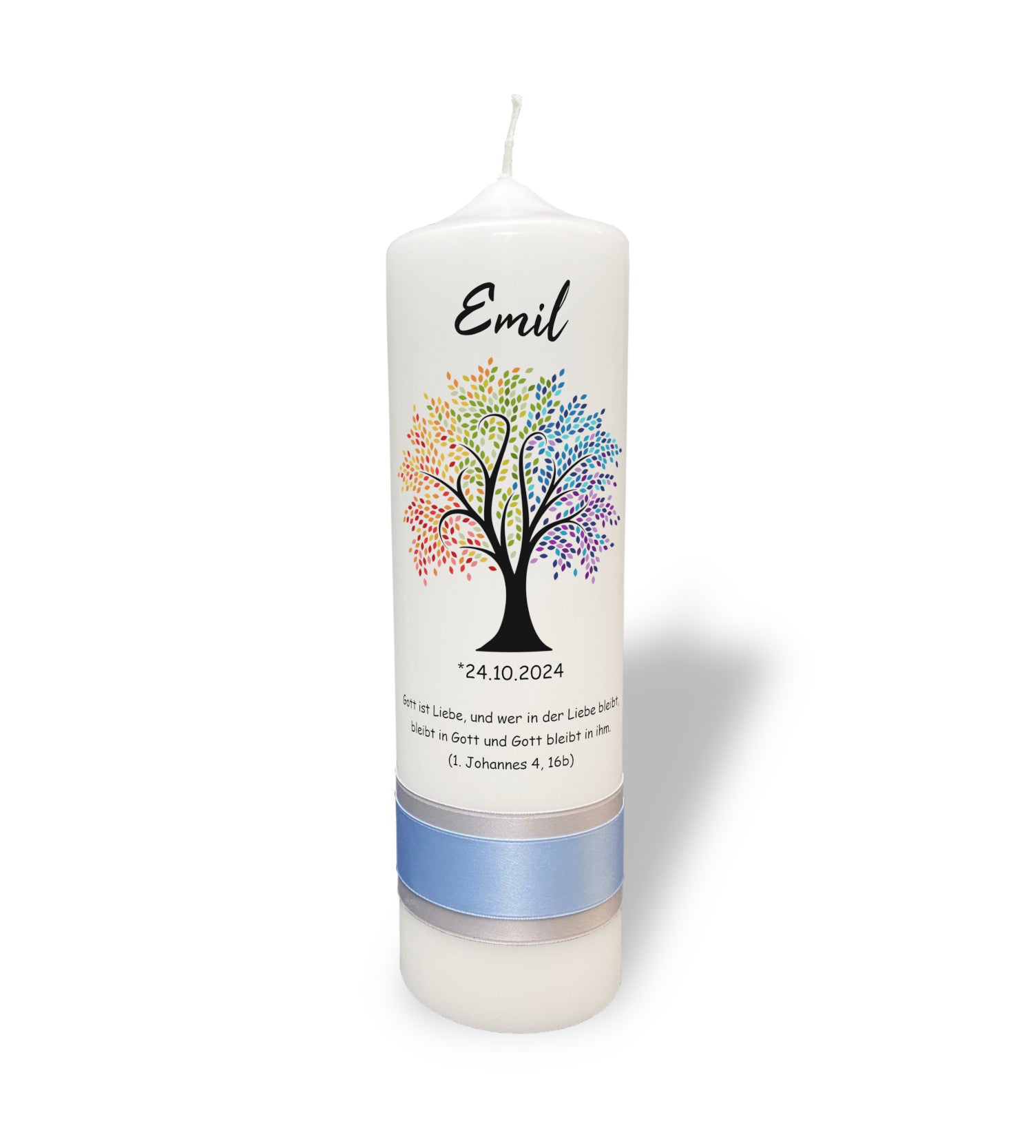 Taufkerze: Lebensbaum in Regenbogenfarben – Ein Kaleidoskop des Lebens